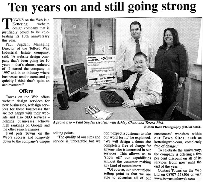 We also run various local town sites and all our websites get free advertising on these popular sites. They offer various business adverts along with a business database search, see the links below for these Northamptonshire and surrounding town sites. www.ketteringweb.com, www.northamptonweb.com, www.wellingboroughweb.com, www.corbytownweb.com, Call Us on 01536 713834 or Email Us now to discuss your web development needs.